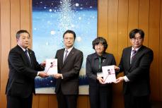 取材や写真撮影をするときは、「名寄市」の腕章を着けていますので、皆さまのご協力をお願いします。