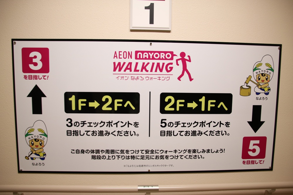これは今年2月に名寄市とイオン北海道株式会社との包括連携協定の締結に伴ったもの。市民の健康保持・増進を目的に、天候に左右されず、買い物ついでに気軽に利用でき、床にコース標示や歩行距離、消費カロリーなどがわかるサインが設置されています。