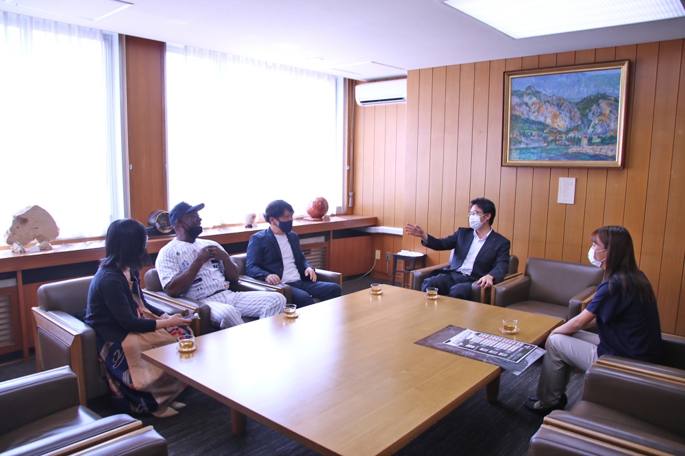 野球の独立リーグ士別サムライブレイズの菅原球団代表、ラルフ・ブライアント監督が加藤市長を表敬訪問されました。
