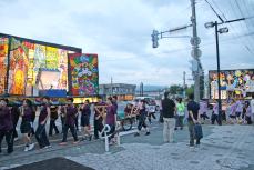 日中は30℃を超える天気でしたが夜になると気度も下がり、風も適度に吹く絶好の状況。生徒たちも自慢の行灯を披露すべく、掛け声をかけ力の限り担ぎ歩きました。
