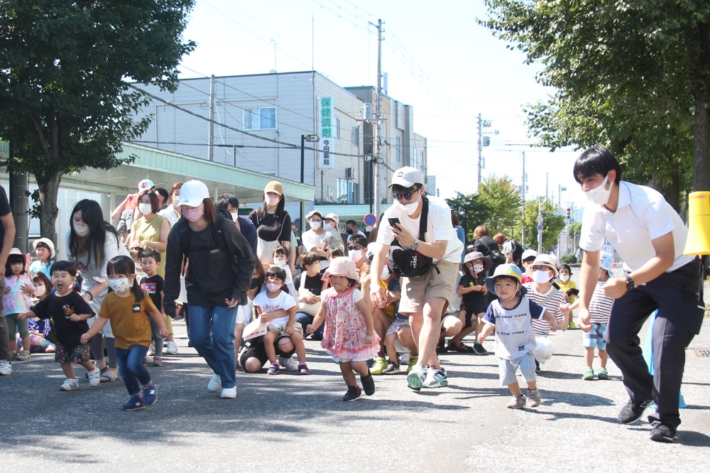 親子で参加する「初めてのお買い物競走」では、お母さんお父さんに手をひかれて、子どもたちが商店街の店舗でお買い物。勢いあまって転んでしまう親子の姿も見られました。
