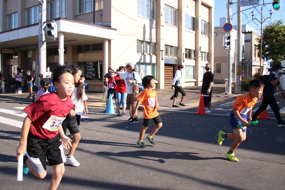 お昼休憩を挟んで、「746リレー」(1チーム4人で746×2メートル走るリレー)では、小学生低学年、小学生高学年、中学生、一般の部に加え、事前に申告した時間に合わせて走るタイム申告の部が行われ、老若男女が市街でデッドヒートを繰り広げました。