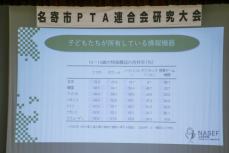 名寄市PTA連合会研究大会が南小学校体育館で開催され、児童生徒の保護者およそ60人が参加しました。