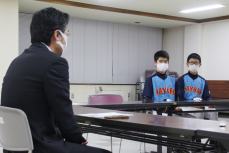 U-15決勝トーナメントに出場した選手は「得意のピッチングで押さえることでき優勝に繋がった。自信が持てるようになった」「練習の成果が3年生でようやく実り、チームとして最高の結果を迎えられた」と、U-14フレッシュゲームズトーナメントに出場した選手は「準優勝は悔しいがバネにして全国では優勝を目指す」「全道では打ち負けてしまったので、全国では中心となってバッティングでひっぱる」と加藤市長に報告し、加藤市長は「ここ近年、NABBCの皆さんの活躍によって、名寄といえば野球というイメージにつながっている。これからも応援している」と激励を送りました。