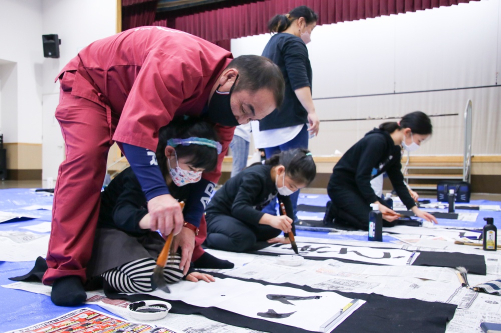 2023年1月15日 新春書き初め墨絵詩書講座 ふうれん地域交流センターで新春書き初め墨絵詩書講座が開催されました。 講師に小林白炎さんと妹の紀子さんが務められ「ダメと思わず、おもいっきり書いてみて」とあいさつし書き初めがスタート。 「半紙はつるつるの方に書くのが一般的だが、ザラザラに書いても味が出る」「漢字は象形文字、絵を描くイメージで書いても良い」とコツを伝授しながら、参加者と一緒に書いていました。 作品は同センター内に一定期間展示されます。 記事で紹介している写真です。写真を選択すると別ウィンドウで大きいサイズの写真が表示されます。