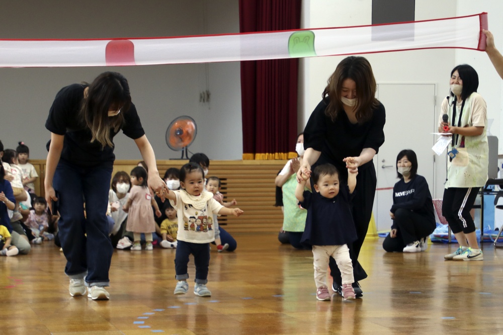 かけっこや玉入れ、障害物競走など、小さな体を最大限に使いながら、ニコニコ笑顔で元気いっぱいに走り回っていました。