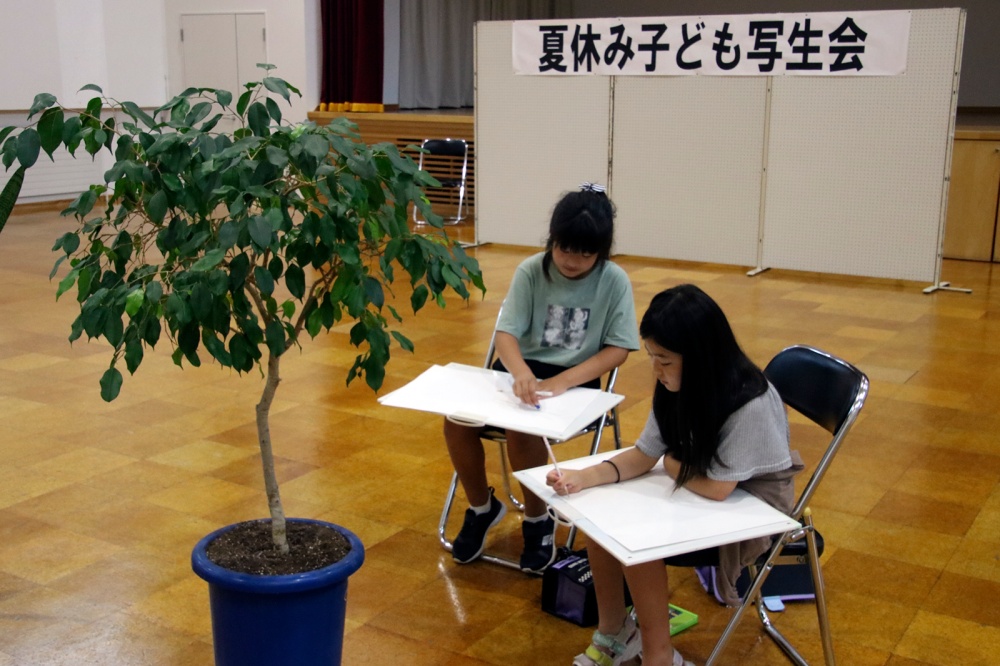 2023年8月4日 夏休み子ども写生会 市民文化センターと浅江島公園で夏休み子ども写生会が行われました。 49人が参加し、講師を務めた棚橋さんは「面白いものを見つけたら描いてみてください」とあいさつ。 子どもたちはそれぞれ気に入った場所を見つけ作業を開始。少し雨が降っていたため、子どもたちは建物の中にあるものや、窓から外を見つめ描きました。 出来上がった作品は、市民文化センター1階展示ホールで16日(水曜日)午前中まで展示されます。 記事で紹介している写真です。写真を選択すると別ウィンドウで大きいサイズの写真が表示されます。