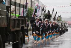 2023年8月5日 名寄まつり神輿渡御 名寄神社からスタートする名寄まつりの神輿渡御が行われました。 4年ぶりの通常開催となった神輿渡御、止めどなく雨が降りしきる中、参加者たちは「わっしょい、わっしょい」と声を張り上げて神輿を担ぎながら市内を練り歩きました。 また、市道西3条通りではたこ焼きや型抜きなど多くの屋台が出店し、大雨の中でも多くの市民が足を運んでいました。 記事で紹介している写真です。写真を選択すると別ウィンドウで大きいサイズの写真が表示されます。