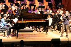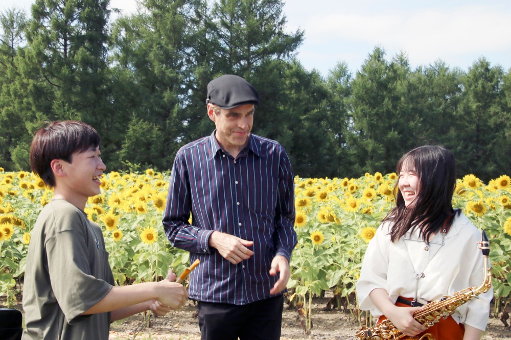 エンレイホールでジャズピアニストのジェイコブ・コーラーさんによる演奏会「PASSION~ピアノと吹奏楽の融合~」が行われ、翌14日には道立サンピラーパーク内のひまわり畑でゲリラライブを行いました。