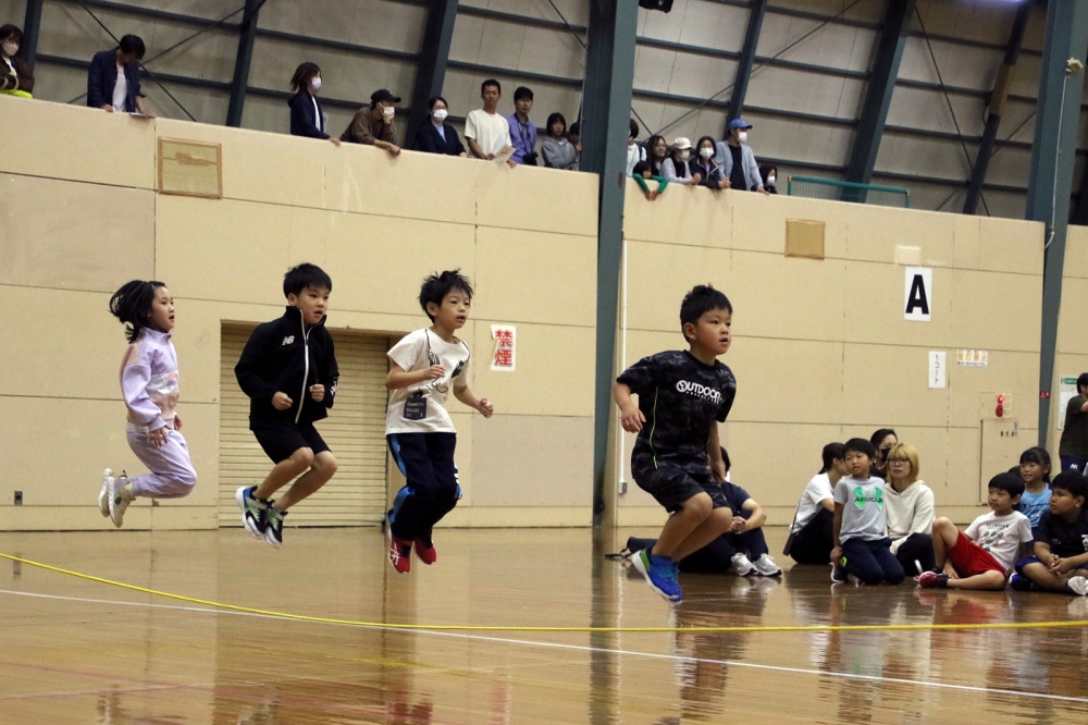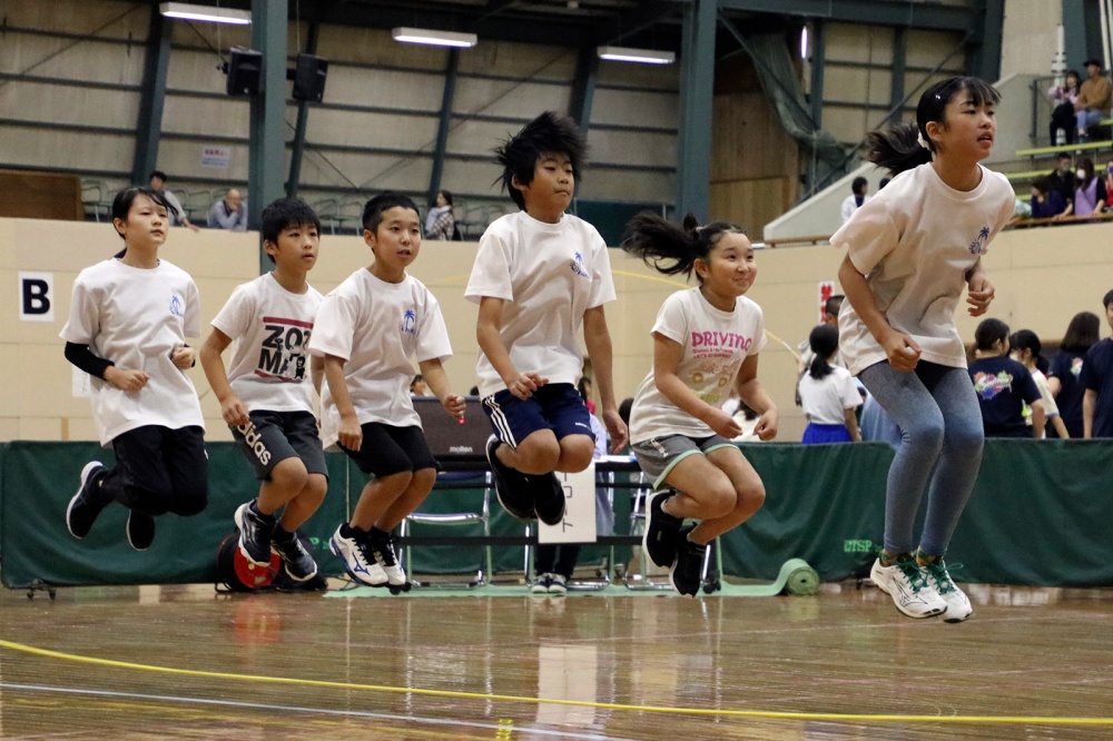 2023年9月30日 第8回チームチャレンジNAYORO2023 スポーツセンターで第8回チームチャレンジNAYORO2023~前進~が開催されました。 4年ぶりの全体開催となり、市内の小中学校から40チーム210人が参加。跳んだ人数かける回数を競う「ロープ・ジャンプ・X・Unlimited」が実施されました。 参加者たちは1回でも多く飛ぼうと息を合わせてジャンプ。応援に来た保護者たちなどから声援があがっていました。 記事で紹介している写真です。写真を選択すると別ウィンドウで大きいサイズの写真が表示されます。