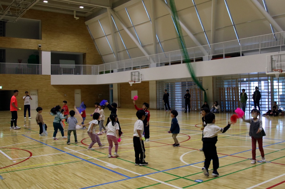 南小学校では未就学児を対象としたバルシューレ体験が開催され、一般社団法人SLDIの辻本智也さんを講師にお招きし、17人が参加。バルシューレとはドイツ発祥のボールを使ったさまざまな運動やゲームを通じて能力をバランスよく身に着けることを目標としたスポーツです。