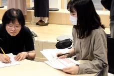 講話の後は、グループに分かれ市立大学生と一緒に夕食の献立を考え、ほたてを使った炊き込みご飯やほうれん草のお浸しにかつお節をかけ減塩するなど、血糖値やたんぱく質の摂取を意識した献立を作りました。