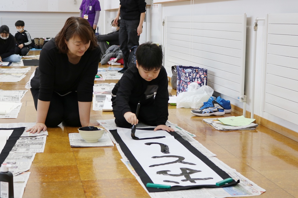 2024年1月11日 新春子ども書き初め広場 市民文化センターで新春子ども書き初め広場が行われ、親子など幼児から一般の方まで35人が参加しました。 講師は高志書道会のメンバーが務め、講師の方々のアドバイスを参考に、参加者たちは力強い作品を書き上げていました。 参加者たちの作品は1月22日(月曜日)の正午まで市民文化センターに展示していますので、ぜひご覧ください。 記事で紹介している写真です。写真を選択すると別ウィンドウで大きいサイズの写真が表示されます。