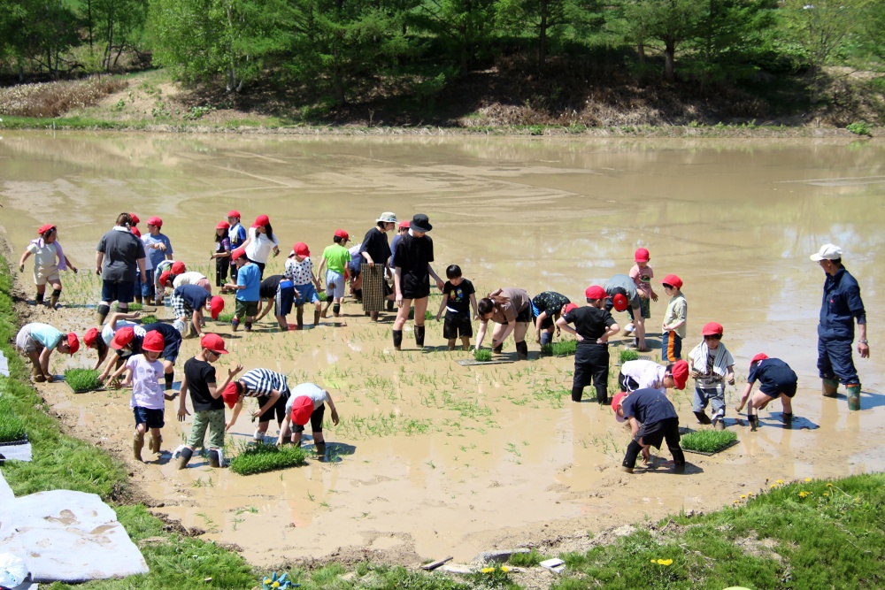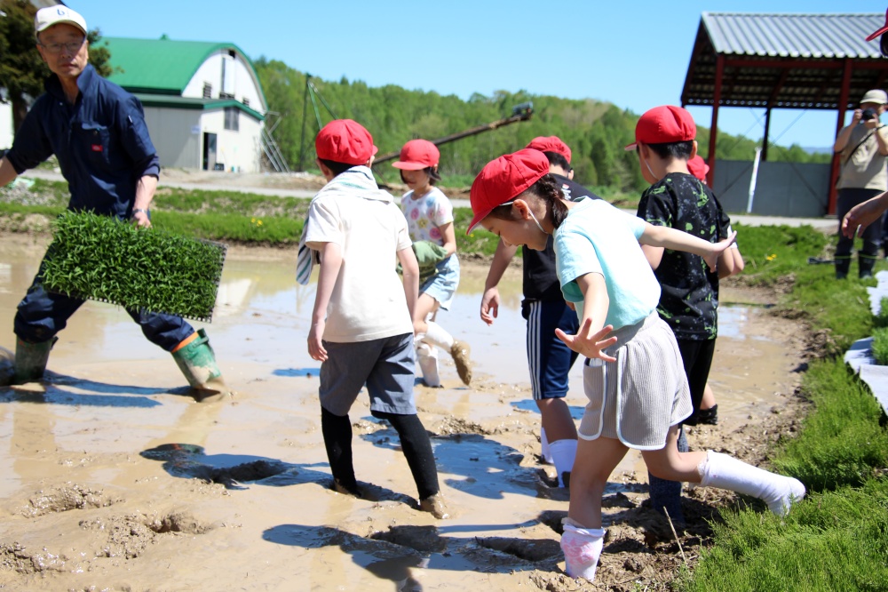 名寄西小学校3年生が田植え体験をしました。当日は天気が良く、絶好の田植え日和となりました。