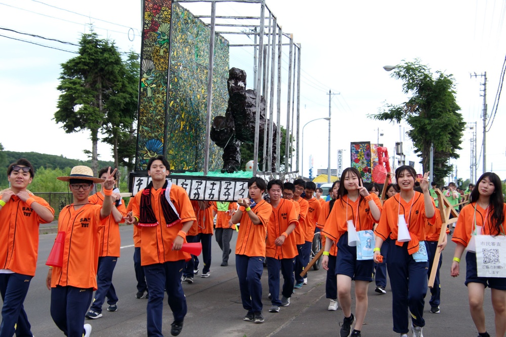 名寄高校生が楽しみにしている行事のひとつ、「名高祭」が7月5日から開催。5日のあんどん行列で幕開けです。この日のために、何日も前からそれぞれのクラス全員で力を合わせて作ったあんどん。個性あふれる作品がずらりと並んだ景色は壮観でした。