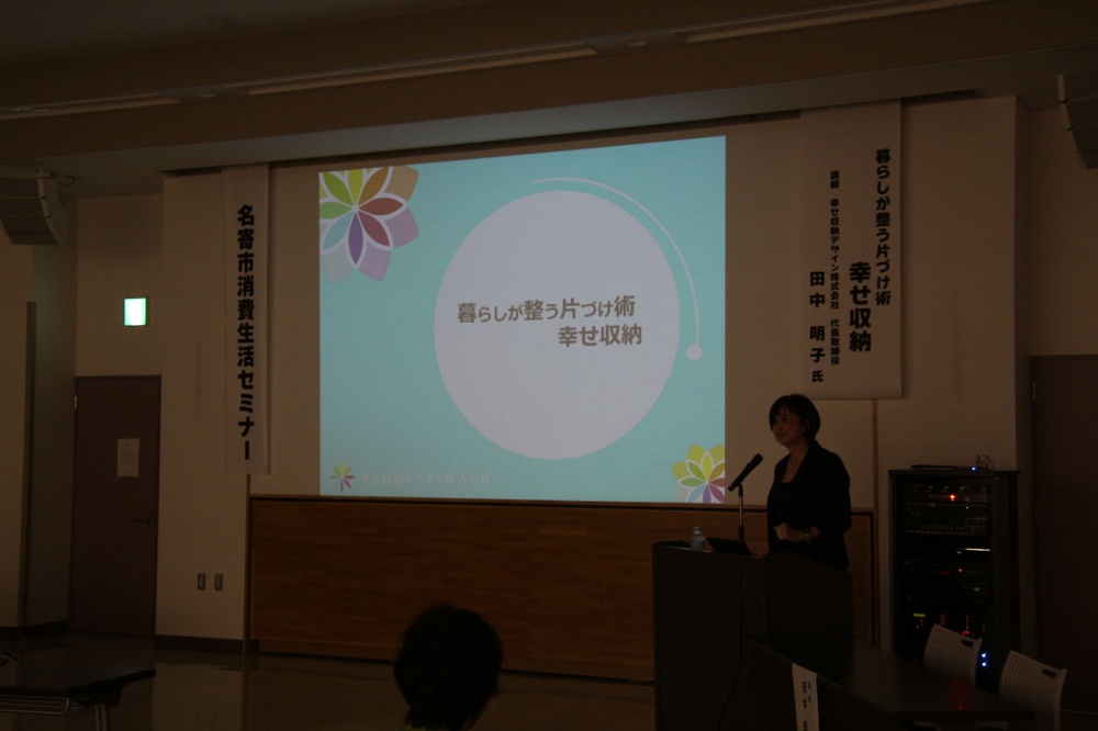 8月3日、駅前交流プラザ「よろーな」で、今年度第2回目となる消費生活セミナーが開講されました。テーマは「幸せ収納」、幸せ収納デザイン株式会社から田中明子氏をお招きしました。田中氏は10年前にも名寄市で講演を行い大好評、この度希望者も多かったことから2回目の講演が決定しました。