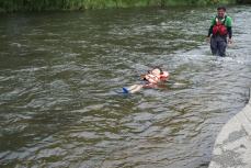 調査の最後には川の流れについて調べるために自分自身が流されてみます。決して遊んでいるわけではありません、調査です。みんな気持ちよさそうな顔をしていました。