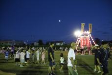 今年は出店も立ち、かき氷やフランクフルトなどが並んでいます。18時30分、名寄市子ども会育成連合会長の谷崎隆宏氏があいさつ、名寄太鼓保存会の太鼓で盆踊り大会はスタートしました。18時30分から19時30分までは「子ども盆踊り」と「子ども仮装盆踊り」。仮装をした子どもたちが少しずつ集まってきます。最初はまばらだった参加者も、19時を過ぎたころにはやぐらを取り囲む円がいっぱいに。仮装をしている子もしていない子も、その保護者たちも一緒になって楽しそうに踊ります。19時30分からは「北海盆踊り」と「大人仮装盆踊り」がスタート。きらびやかな衣装やアニメのキャラの仮装など、力の入った仮装をした大人たちが集まりました。会場に集まった約千人もの市民は、にぎやかな太鼓と手拍子のリズムに乗せ、夏の夜に輝く月のもと20時30分まで楽しく踊り続けました。