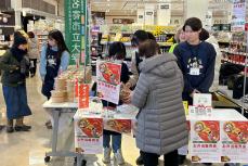11月19日、市立大学図書館プレゼンテーションスペースで記者会見を行い、新作お弁当4種を発表した「産学官民連携なよろ健康レシピ開発プロジェクト」。23日・24日には記者会見でも周知していたとおり、イオン名寄ショッピングセンターにて販売会を行いました。