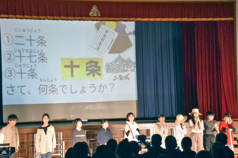 2024年11月30日 名寄西小学校学習発表会 名寄西小学校の学習発表会が同校体育館で開催されました。 「成長した姿をお客さんに見せよう」をテーマに、各学年ごとに演技や楽器などを披露。 5年生は総合的な学習の時間「心のバリアフリー」で学んだことを生かし、寸劇や手話歌を披露。6年生は「走れメロス」の演劇を発表。せりふ、衣装、演出まで全て自分たちで考えました。 児童たちは練習の成果を一生懸命発揮し、頑張る姿に保護者は温かい拍手でエールを送りました。 記事で紹介している写真です。写真を選択すると別ウィンドウで大きいサイズの写真が表示されます。