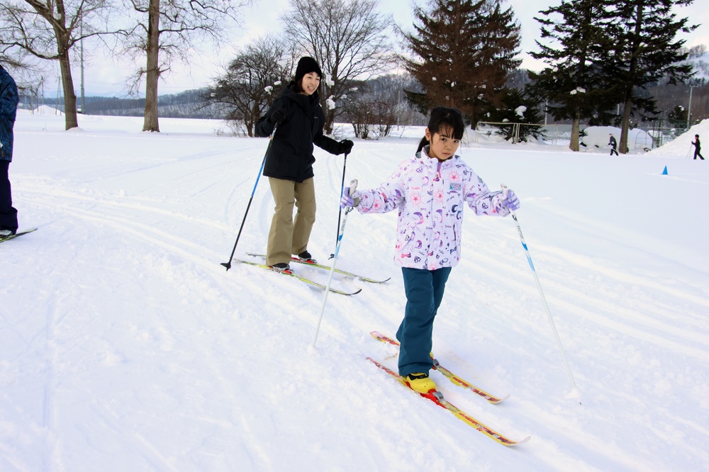 晴れて少し暖かい天気の中、中名寄小の児童は元気いっぱいウィンタースポーツに取り組みます。1月17日はクロスカントリー教室がありました。