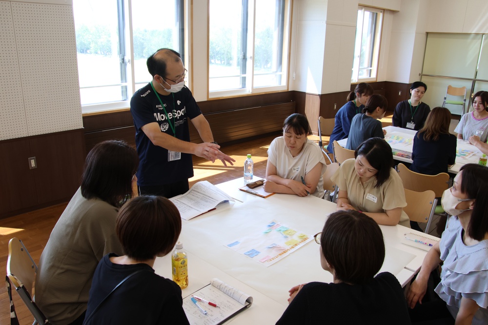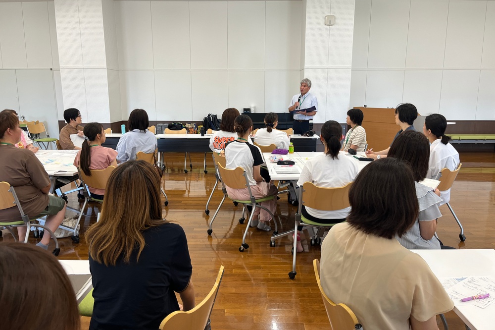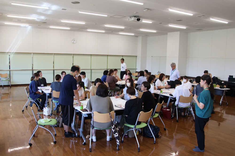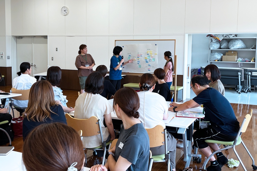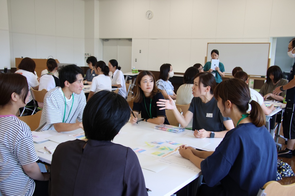 5日間の公開保育では特別なことはせず、子どもたちはいつも通りのびのびと活動。公開保育に参加した先生たちは、それぞれ園児の様子や教室の中を見て回りました。最終日午後からの保育研究では、4班にわかれ各学年ごと、保育者の意図を伝えたり、参加者が意見を伝えたりとそれぞれ時間いっぱいまで情報交換や意見交流などを行いました。最後には市立大学傳馬淳一郎准教授による、公開保育の振り返り・総評もあり、保育に対する知識や思いを深める場となりました。