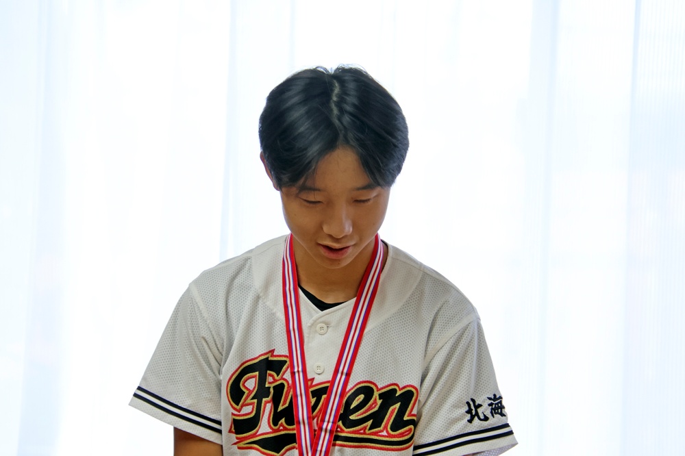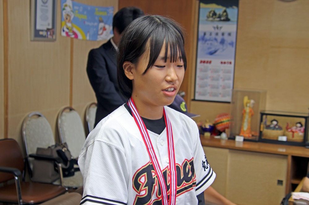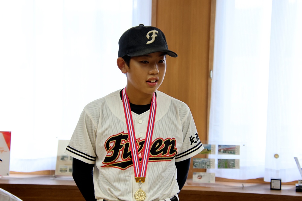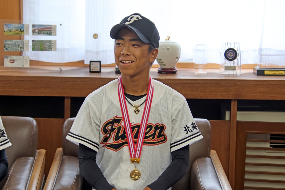 市役所名寄庁舎に風連中学校、智恵文小中学校の野球部員(6人)が訪れ、知内町、木古内町で開催された令和7年度北海道中学校体育大会第76回北海道中学校軟式野球大会の出場結果を報告しました。