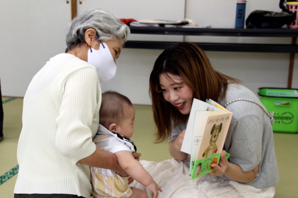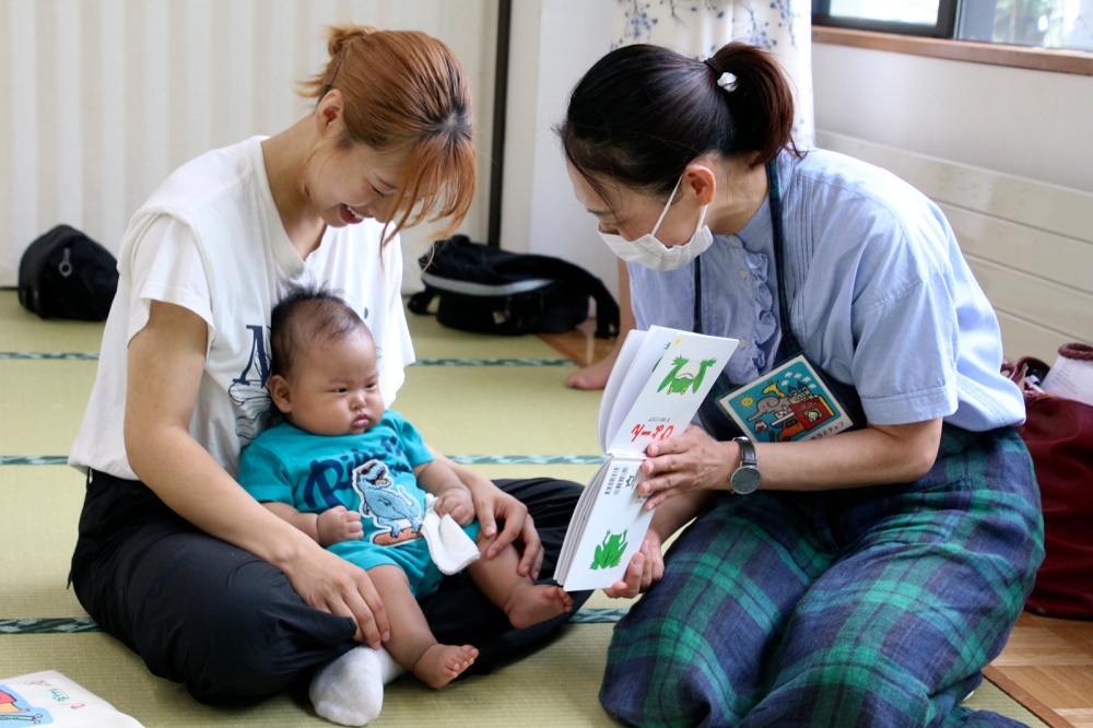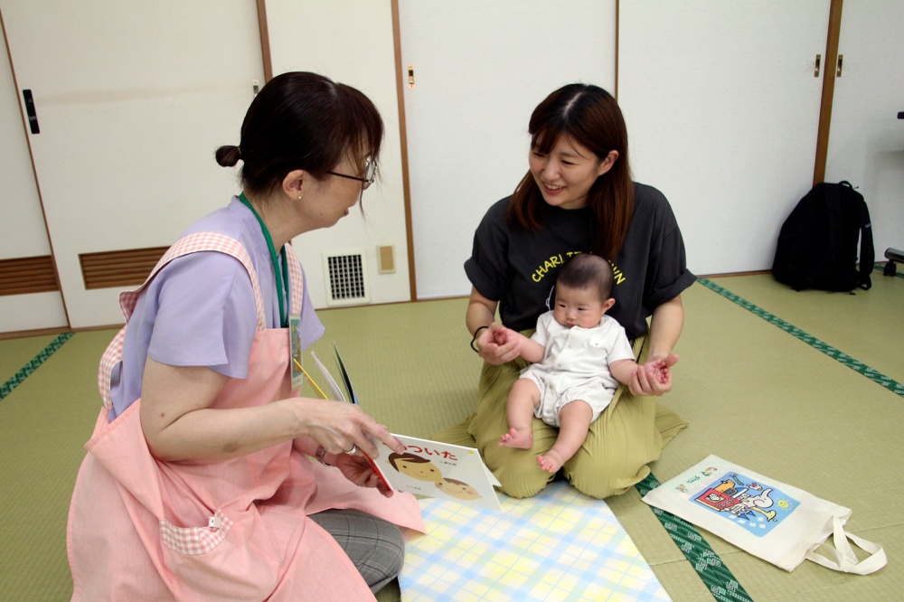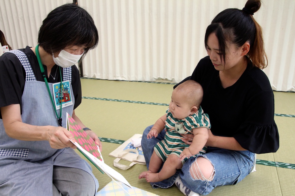 会場では図書館職員やボランティアによる読み聞かせが行われ、保護者が赤ちゃんに読んで聞かせる場面も見られました。絵本を通じて親子が触れ合う温かな時間に、会場は笑顔に包まれました。