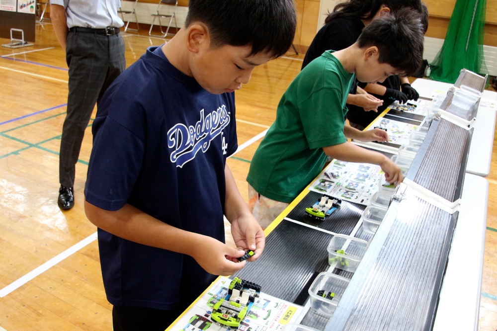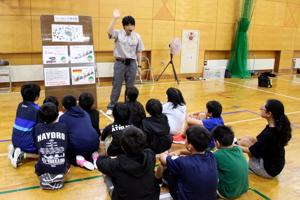 児童たちは自動車の製造工程を模した体験に取り組み、チームごとに協力しながら部品を組み立てることで、ものづくりの楽しさや役割分担の大切さを体感しました。
