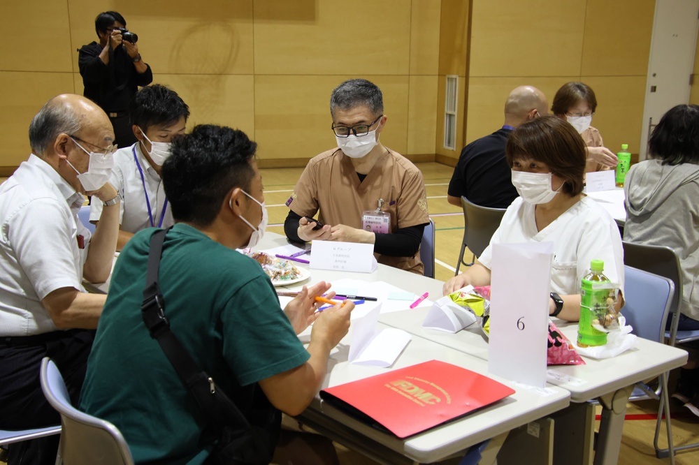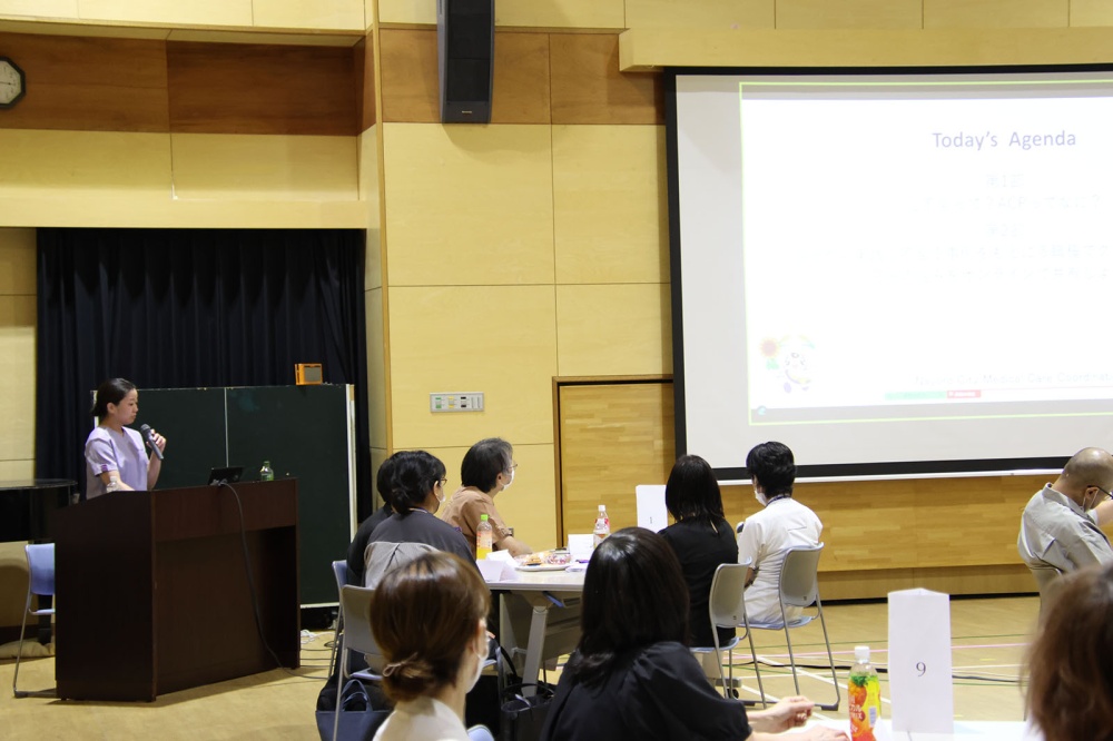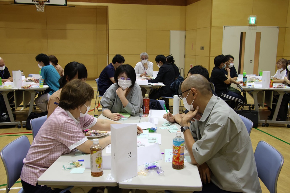 患者やその家族の「何がしたい」、対して容体や療養の方針から「何ができる」、「何をしてあげたい」など「アドバンス・ケア・プランニング(ACP)」の考え方に基づき、各職種からいろいろなケアの道を模索する支援策が出されました。おかしやジュースを口にしながら時折笑い声なども聞こえる有意義な「ケアカフェ」となりました。
