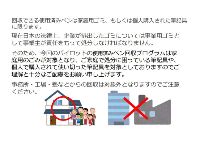 市では、株式会社パイロットコーポレーションと連携し、使用済みのプラスチック製筆記具の回収を実施しています。
