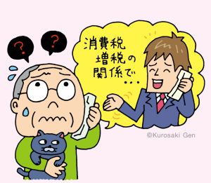 - 金融機関や行政などが、消費税増税を理由に消費者個人に電話をかけてくることはありません。「お金が戻ってくる」などと言われても信用してはいけません.