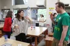 講師としてキャンプに参加している市内ALTのアンディさんとディーナさんの考案したコミュニケーションを通して、一日中英語を楽しみながら学んでいました。