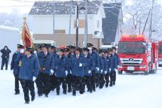 現在位置の階層 ホーム フォトでお知らせ 2024年 2024年1月7日 風連消防団出初式 2024年1月7日 風連消防団出初式 名寄消防署風連出張所前で風連消防団出初式が行われ、風連消防団に所属する団員54人が式に臨みました。 第1分隊から第4分隊までが、消防車の機械器具点検と行進を行い、日頃から培っている消防力を披露しました。 また、出初式の後、ふうれん地域交流センターで式典が行われ、長きに渡って勤続した消防団員の方々に表彰状が送られました。 記事で紹介している写真です。写真を選択すると別ウィンドウで大きいサイズの写真が表示されます。