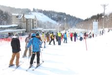 21日は、リフトが終日無料開放され、リフト前は長蛇の列に。また「スキーランニングバイクレース」や「そり☆りんピック」などの子ども向けイベントが行われ、参加した親子たちはとても楽しそうな表情で身体を動かしていました。その他、自衛隊によるスノーモービル体験や自衛隊スキーの装備体験、キッチンカーの出店も見られ、今シーズン最低気温である-24.6度を観測する中、ホットなイベントを多くの人が楽んでいる様子でした。