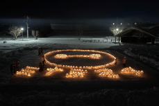 日が暮れるまで温かい飲み物を飲みながら休憩をとり、17時から完成したスノーランタンの点火式を行いました。式に伴い協議会の中村栄会長が「長きにわたり実施してきた本事業も一区切りとなるが、ほのかな明かりを楽しんでほしい」とあいさつ。