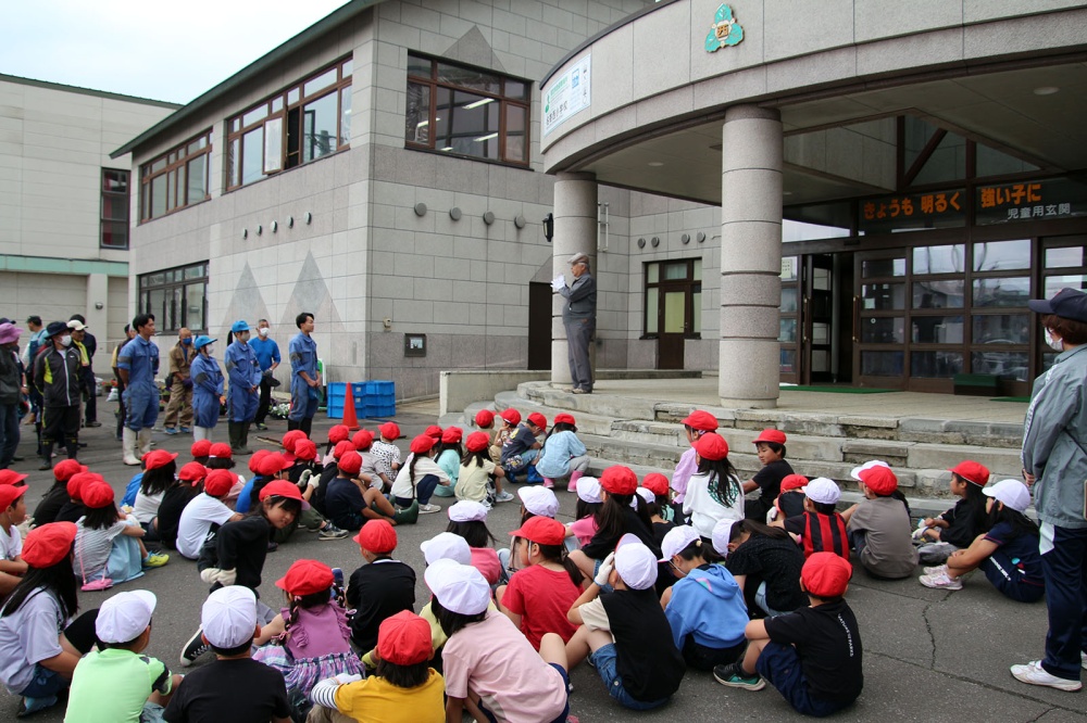 開会式では会長の木田さんからごあいさつ。「一緒に作業することで交流を深め、西小安心会議についてちょっとでも理解してほしい。街で会ったらあいさつしてほしい」と児童に寄り添いあいさつをしました。