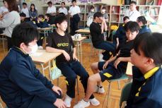 五十嵐氏は冒頭で「障がいを持っている人のすべてを理解することは難しい。実は自分が人より少数派だったり、生きる上で不自由を感じている障がい者なのかもしれない」と話したうえで、障がい者である知人がテレビで取材された映像を生徒に見せました。「自分の周りに、障がい者がいたらどうする?」と投げかけます。生徒たちは3~5人でグループワーク、話し合いを始めますが全員が難しそうな顔をしていました。「ご飯を食べさせてあげる」、「介護をする」、「一人でできないことをいっしょに」なかなか明確な答えは出ないまま発表しました。これを受けて、五十嵐氏は「人の幸せや生き方はさまざま。障がいを持っていることを不幸だと思わないで。すべて理解できなくても、自分にできることから、困っている人を助けてほしい。」と語ります。