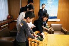 副市長は「かぼちゃ一つ一つにいろいろな苦労などが詰まっていると思う。ありがたくいただきますね。」と寄贈に来てくれた児童生徒会のみんなとかぼちゃを交互に見ながら伝えました。