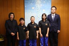 市役所名寄庁舎に風連トランポリン少年団所属の杉野こはるさん(風連中央小6年)、斎藤千薫さん(下川小6年)、岡村健翔さん(名寄小5年)が訪れ、12月6日から神奈川県川崎市で行われる2024川崎トランポリンジャパンオープンに向けた意気込みを加藤市長に報告しました。