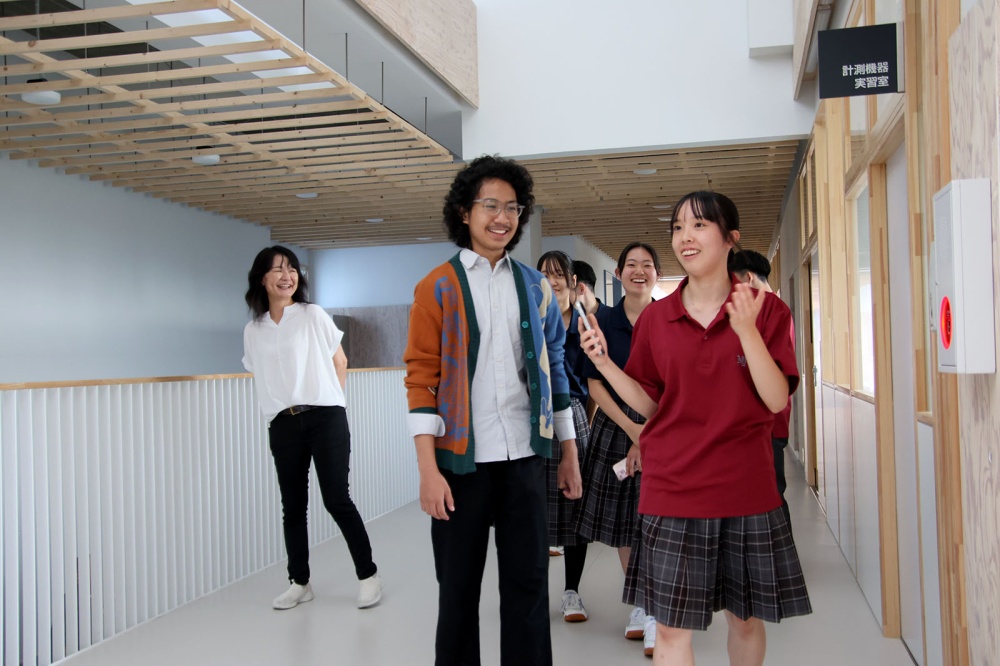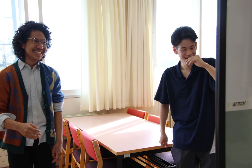 到着後は早速名寄高校の生徒6人が校内を案内。彼ら6人は10月19日~26日にかけての「台湾派遣事業」に行き交流体験をすることが決まっています。その予習も兼ねて、英語で案内・交流を行いました。ラッファノさんは高校生の時に少しだけ日本語を勉強していたらしく、日本のアニメや漫画なども知っていました。生徒たちはアニメや漫画、今回の留学のことなどを交えながら、先生に教えてもらいつつ、英語を紡いで話していました。
