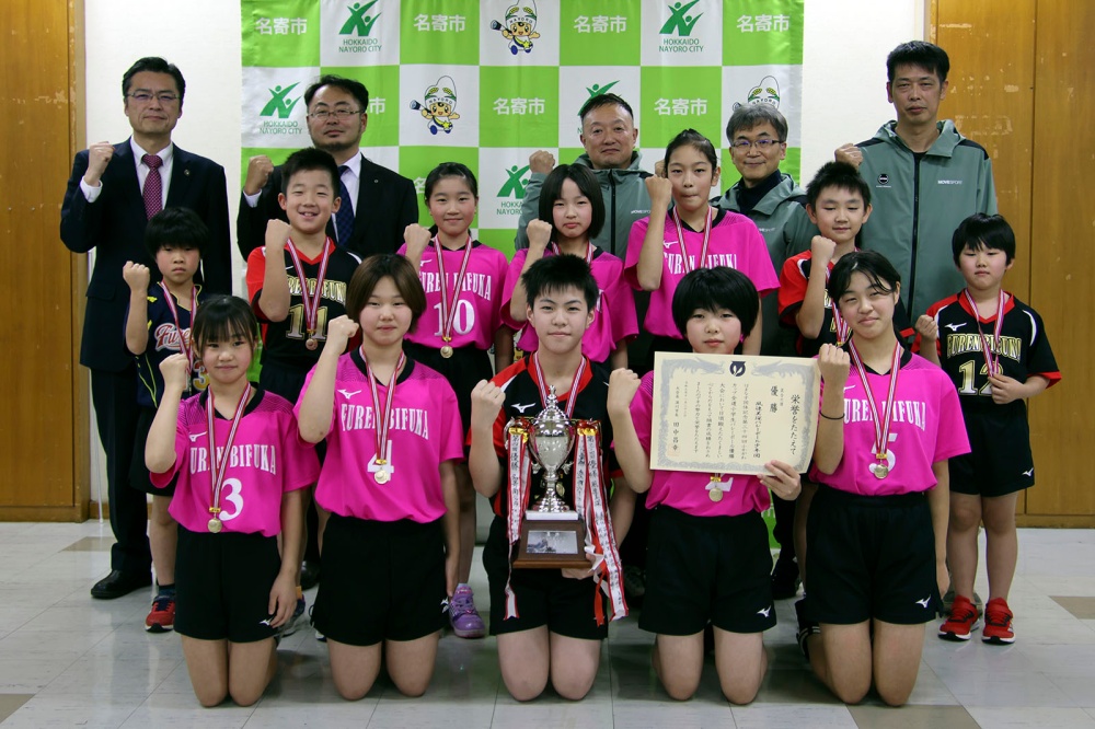 12月15日、市役所名寄庁舎に風連美深バレーボール少年団(神田蓮之佑主将)が訪れ、11月22日、23日に深川市で開催された「はまなす国体記念 第34回ふかがわカップ全道小学生バレーボール優勝大会」において優勝したことを報告しました。