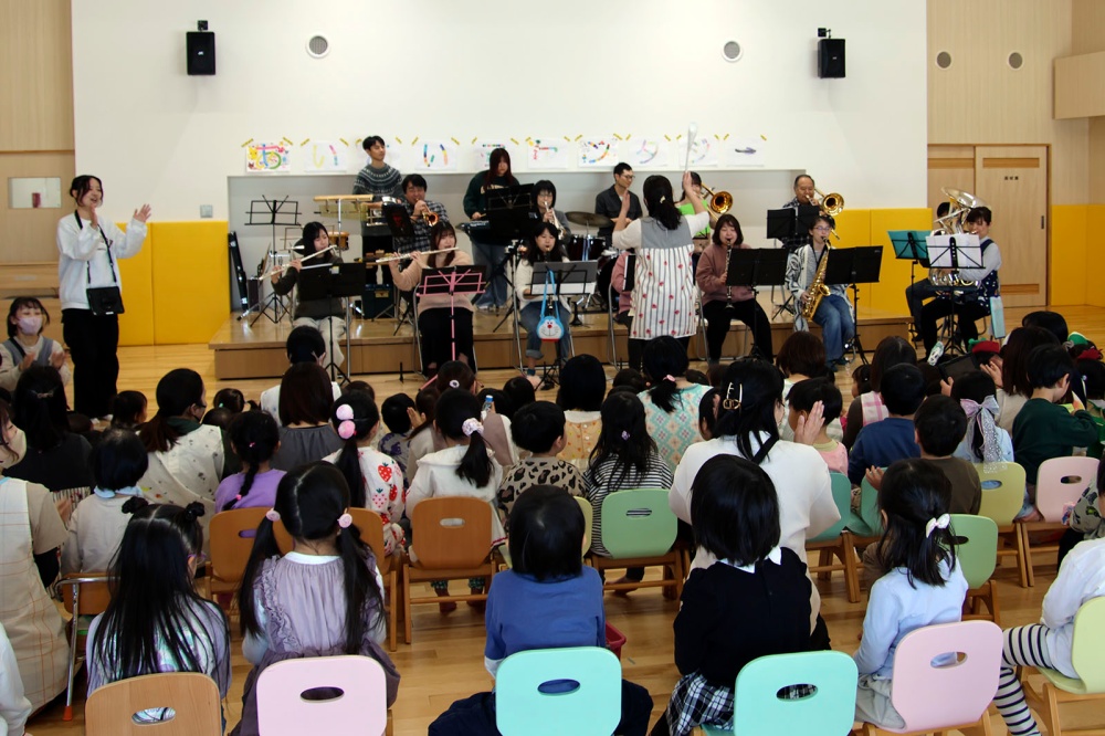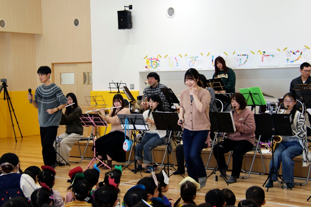 認定こども園あいあいで園児たちに音楽の楽しさを届ける「あいあいファンタジー」が開催され、名寄吹奏楽団による演奏会が行われました。