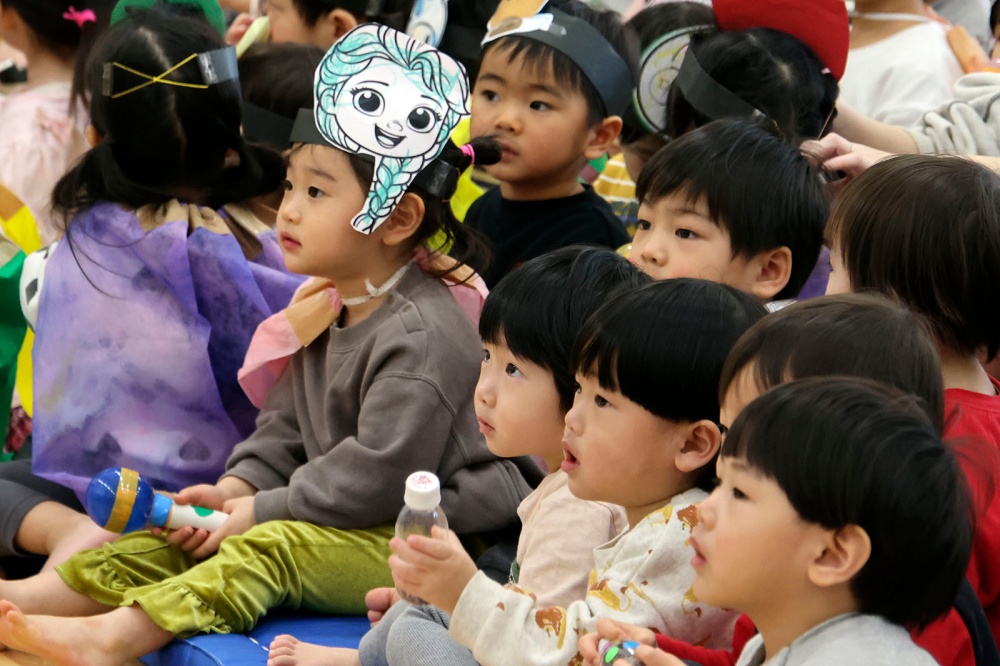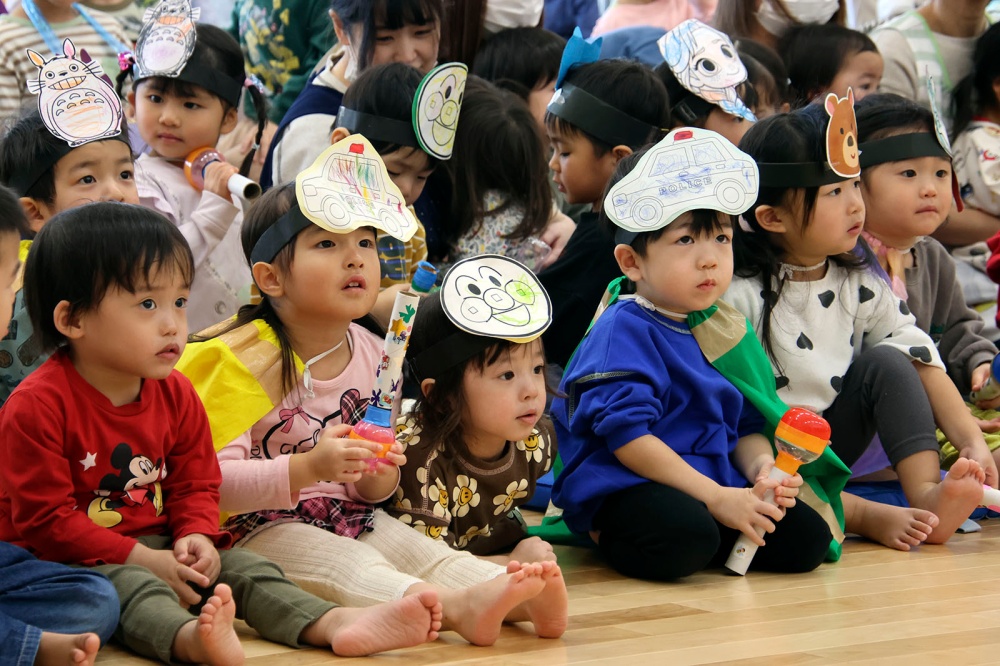 かえで組の園児たちはステージ前に並び、音楽に合わせて元気いっぱいのダンスを披露。会場は大きな拍手と笑顔に包まれました。